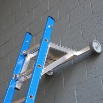 Het universele hulpstuk is voorzien van rollers zodat dit eennvoudig op de ladder tegen de muur omhoog te schuiven is.